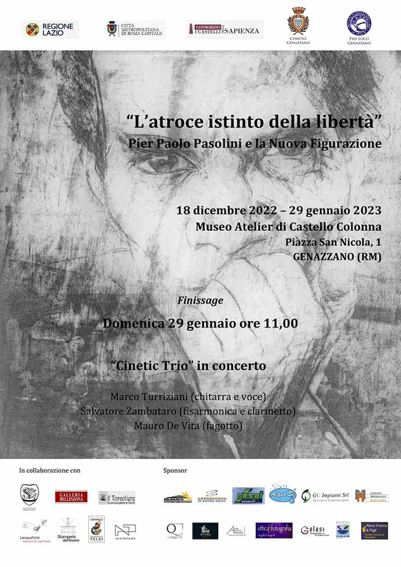 Domenica 29 gennaio, in occasione della chiusura della mostra L’atroce istinto della libertà, Pier Paolo Pasolini e la Nuova Figurazione a cura di Francesca Tuscano, il Museo Atelier di Castello Colonna di Genazzano ospita un concerto del Cinetic Trio.