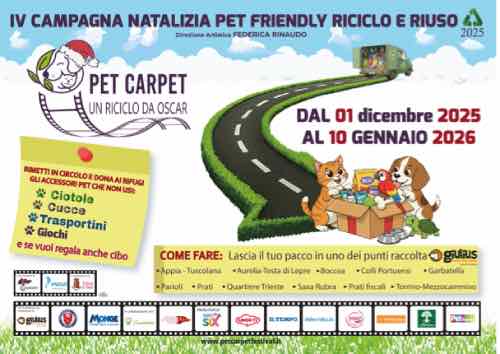 gli store Giulius, e alcune delegazioni dell’Automobile Club Roma. Per informazioni e aggiornamenti: www.petcarptefestival.it o petcarpetfestival@gmail.com Un gesto semplice che cambia il destino di qualcuno. A Natale, scegliere di non lasciare un oggetto chiuso in un cassetto significa regalargli una nuova vita. E, soprattutto, ricordarsi che un animale non è un dono da scartare, ma un impegno che dura per sempre.