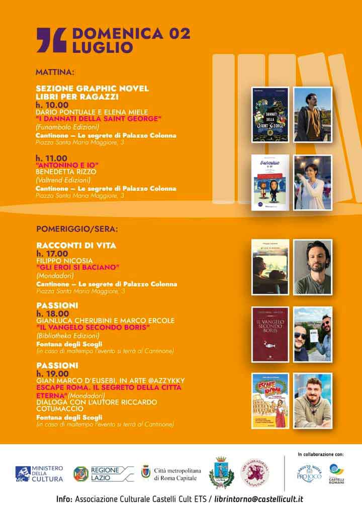 Nella giornata di domenica mattinata dedicata al graphic novel e ai libri per ragazzi con “I dannati della Saint George” e “Antonino e io” ispirato ad Antonino Pio, imperatore nato proprio a Lanuvio. Il pomeriggio sarà poi il momento di Filippo Nicosia col suo terzo romanzo “Gli eroi si baciano”; mentre la chiusura del festival, con due eventi alla Fontana degli Scogli, sarà affidata allo speaker radiofonico e scrittore Riccardo Cotumaccio che modererà alle ore 18 l’incontro con gli autori de “Il Vangelo secondo Boris” dedicato all’omonima serie di culto e alle 19:00 un dialogo con l’influencer Gian Marco D’Eusebi in arte Azzykky con il suo “Escape Roma” dedicato ai segreti della città eterna. Ringrazio – ha concluso De Santis – quanti hanno collaborato alla realizzazione della kermesse, l’associazione Castelli Cult, gli autori e i moderatori delle presentazioni, la Lanuvio Nuova Pro Loco e invito tutti a partecipare agli eventi che sono liberi e gratuiti”.