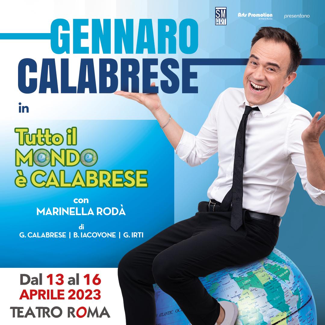 Un comico Calabrese, di nome e di fatto che, dopo essere stato per molto tempo in giro per il mondo con i suoi spettacoli, torna finalmente a casa dove tutto sembra diverso. Il travolgente attore Gennaro Calabrese è pronto a stregare il pubblico del teatro “Roma”, con il suo nuovo live “Tutto il mondo è Calabrese” in scena dal 13 al 16 Aprile (spettacolo prodotto dall’Artspromotion di Mario Russo e dalla SM ART) e i cui testi portano la firma dello stesso Calabrese e di Berardino Iacovone e Gianluca Irti.