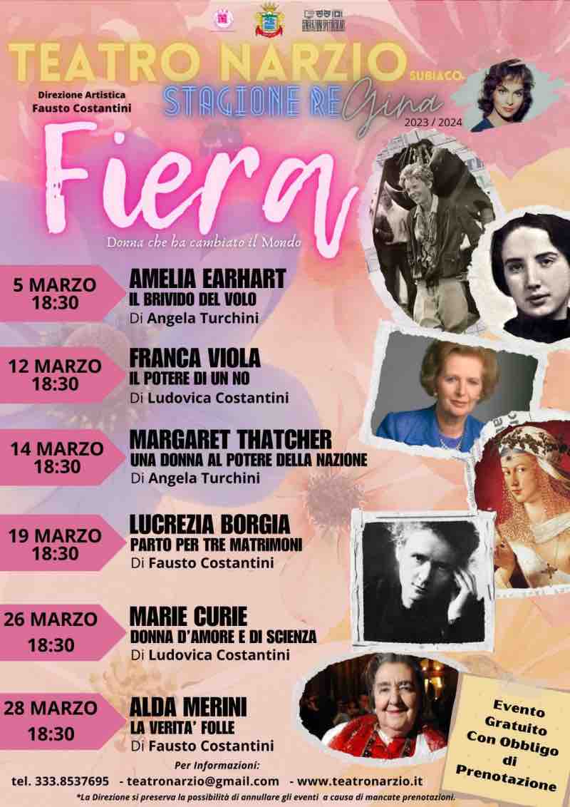 Il 14 marzo sarà la volta di “Margaret Thatcher” di Angela Turchini, mentre il 19 marzo si esplorerà la vita di “Lucrezia Borgia” a cura di Fausto Costantini.