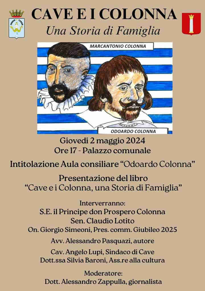 Durante la cerimonia di intitolazione, sarà presentato il libro intitolato “Cave e i Colonna – Una Storia di Famiglia”, scritto da Alessandro Pasquazi, una pubblicazione che getta luce sui secoli di storia condivisa tra la città di Cave e la prestigiosa famiglia Colonna.
