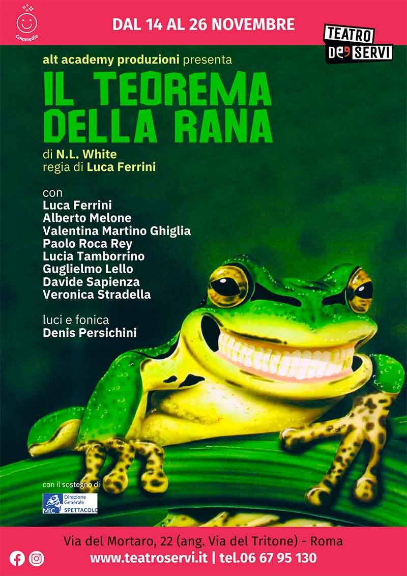 Dopo aver riscosso un grande successo nel 2022, ecco che ritorna a Roma, sul palco del Teatro de’ Servi, dal 14 al 26 novembre, “Il Teorema della rana”, spettacolo di N.L. White diretto da Luca Ferrini.