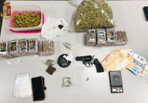 In particolare, in via Grotte di Gregna una Volante ha fermato un’utilitaria con a bordo una coppia di romani: M.M. di 36 anni e D.P.J di 28. I poliziotti, insospettiti dall’atteggiamento dei due, hanno approfondito il controllo trovando M.M. in possesso di un frammento di hashish. La successiva perquisizione domiciliare ha permesso di sequestrare 45 panetti di “fumo”, una busta da 700 grammi di marijuana, poche dosi di cocaina ed una pistola “a salve” con 36 colpi.