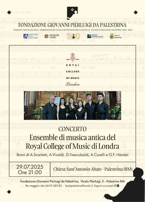 In attesa del concerto dell’ Ensamble di musica antica del Royal College of Music di Londra che ci sarà martedì 29 luglio nella chiesa di Sant’Antonio Abate di Palestrina.